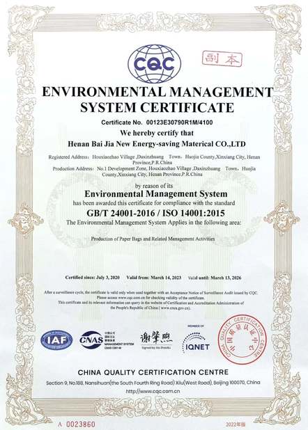 Kwaliteit staat voorop, van het ruwe kraft papiermateriaal tot de eindproducten, Baijia heeft ongeveer 30 sets testapparatuur en een eigen kwaliteitscontrolesysteem. Dit zorgt ervoor dat elke stap van de productie voldoet aan de normen.